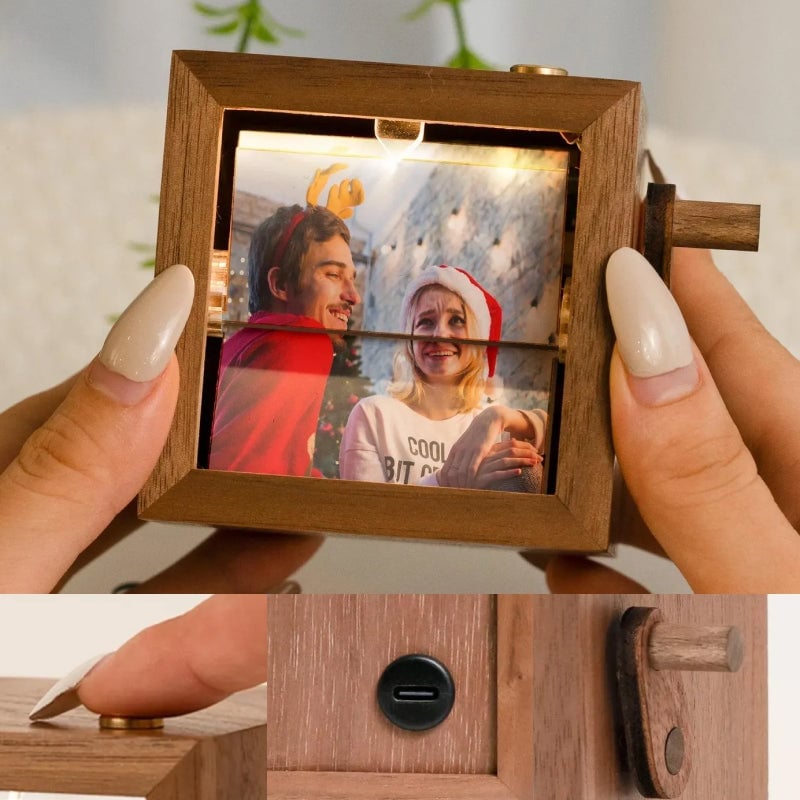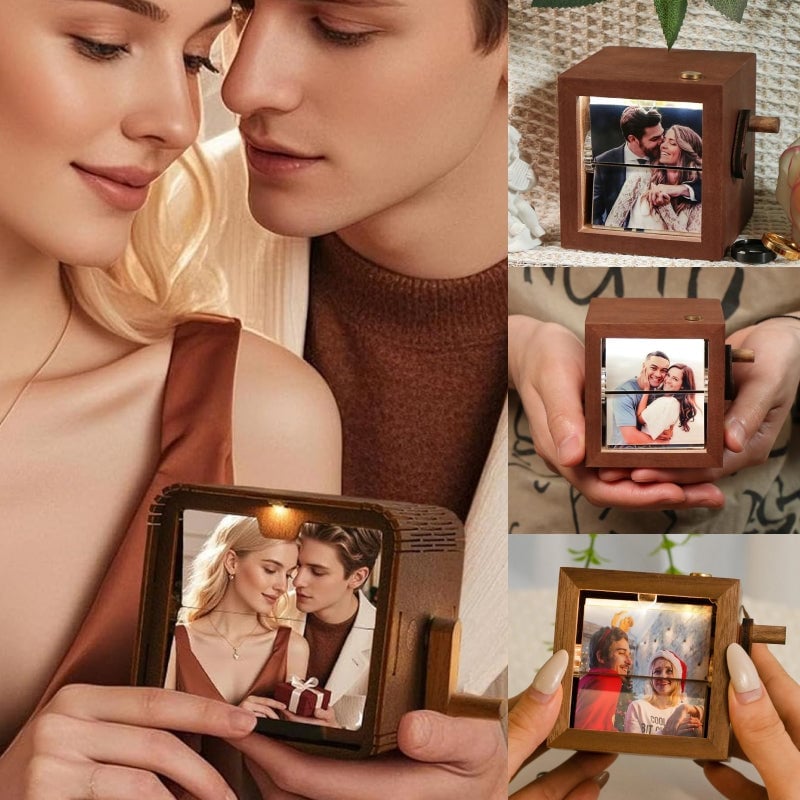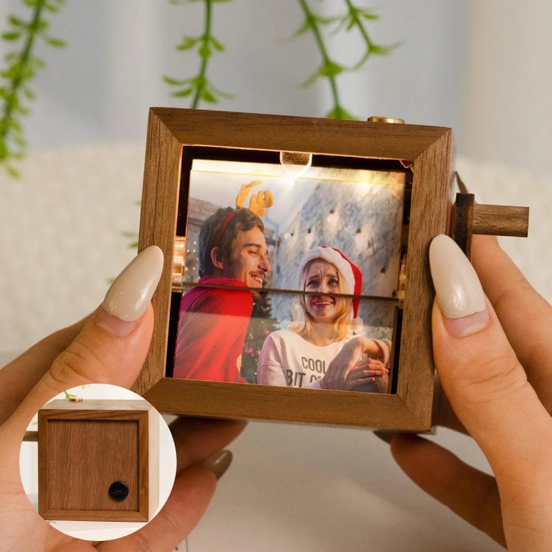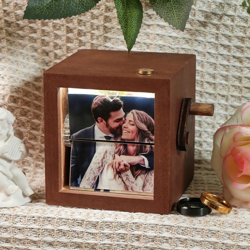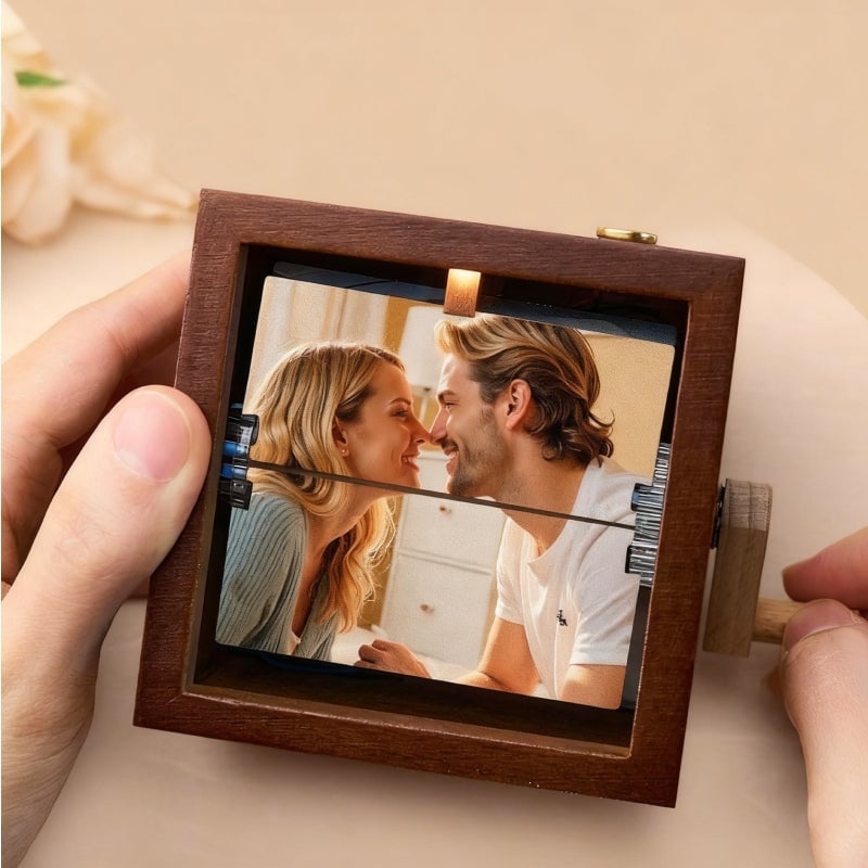 Suchen Sie nach einem einzigartigen Geschenk voller Herz, das die Augen Ihres Partners oder Ihrer Mutter zum Leuchten bringt? Warum sich mit gewöhnlichen Geschenken zufriedengeben, wenn Sie ihnen diese anpassbare hölzerne Daumenkino-Fotomaschine schenken können – ein Erinnerungsstück, das Erinnerungen, Charme und ein warmes Leuchten in einem unvergesslichen Paket vereint?