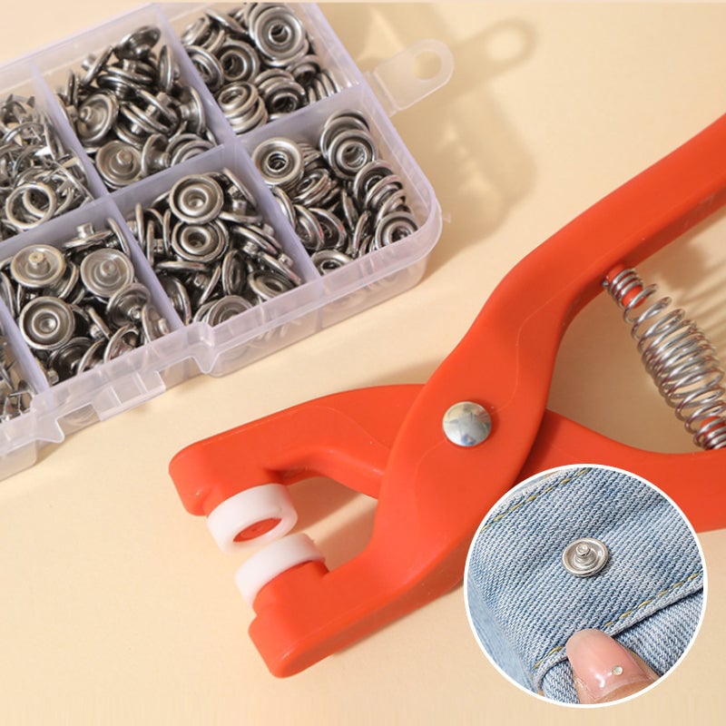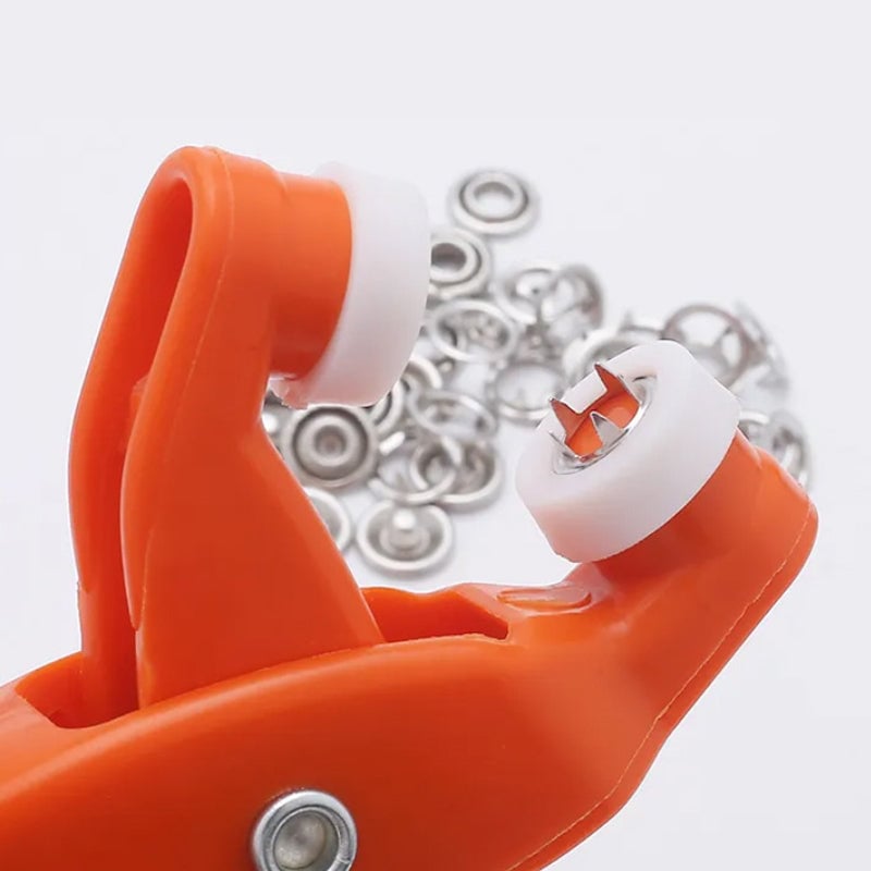 Einfach zu bedienen: Mit unserem Befestigungsset können Sie schnell Ösen, Druckknöpfe, Nieten und mehr anbringen.