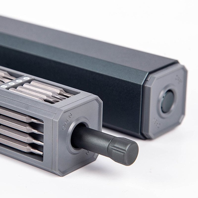 💁♂️ Alles in einem magnetischen Gehäuse: Wird mit einem magnetischen Gehäuse geliefert, das den elektrischen Schraubendreher und die Metall-Bits geordnet an Ort und Stelle hält. Der Pop-up-Mechanismus sorgt für ein angenehmes Gefühl bei jedem Öffnen und Schließen des Gehäuses.